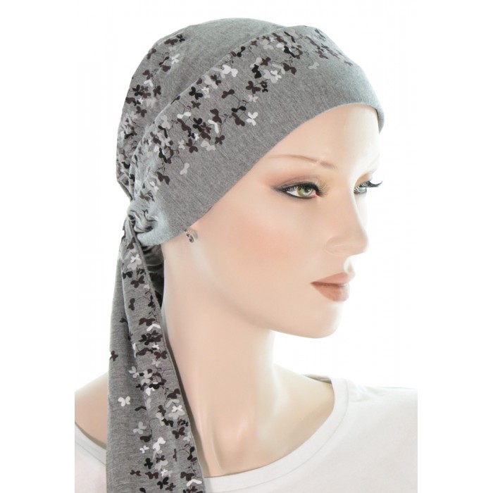 The Joy of Flower cancer scarves are made fully with cotton. This natural fiber is proven for its comfort and softness. This chemo head scarf is already pre-shaped and designed to fit your head like a hat. The long tails offer a well appreciated flexibility in term of style and look.