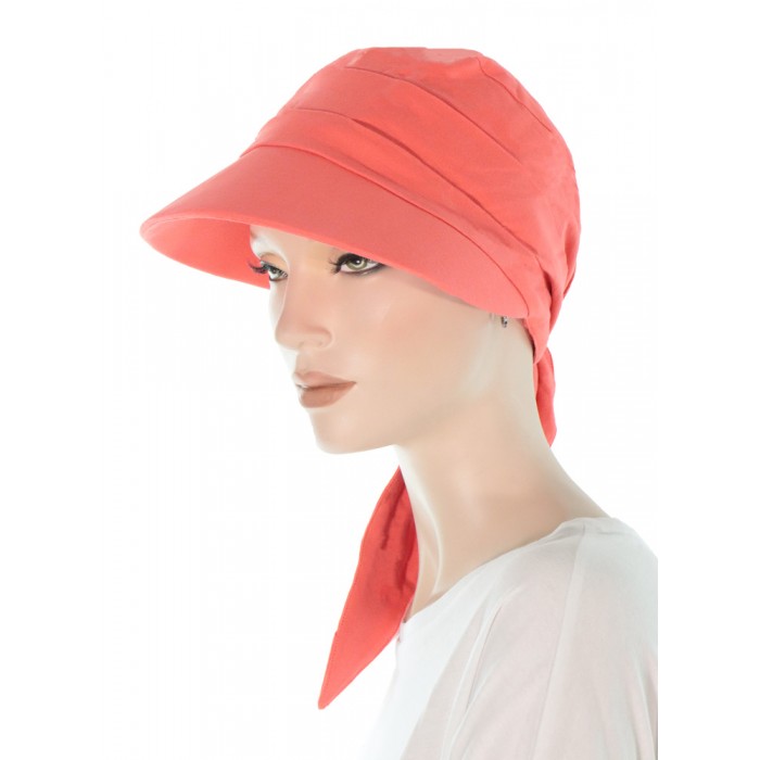 Top Elegance cotton brimmed chemo hats: coral color