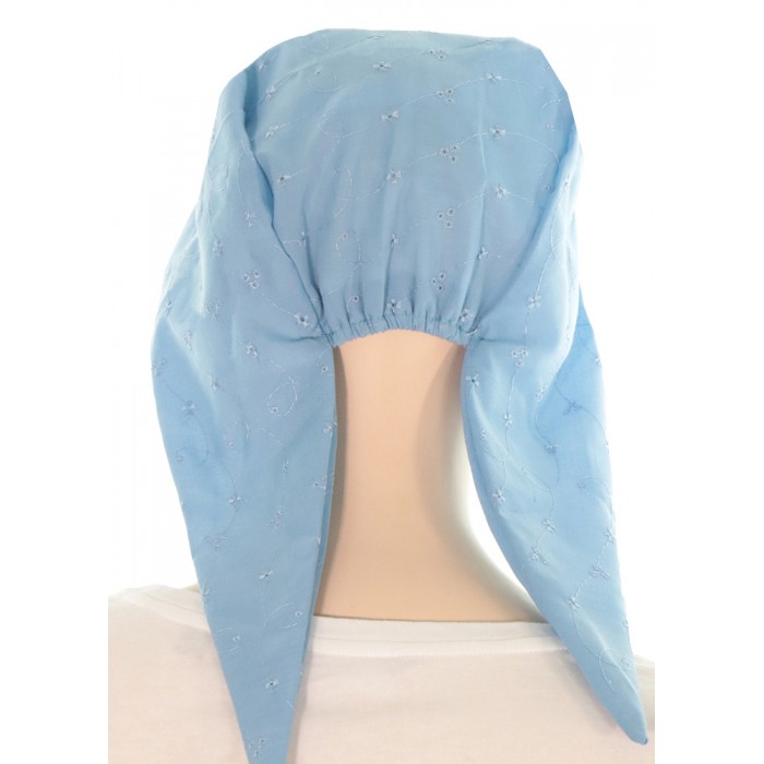 • This chemo scarf has an elastic band at the rear to fit most patients head dimensions. This model is already sewn like a hat to fit the shape of the head.