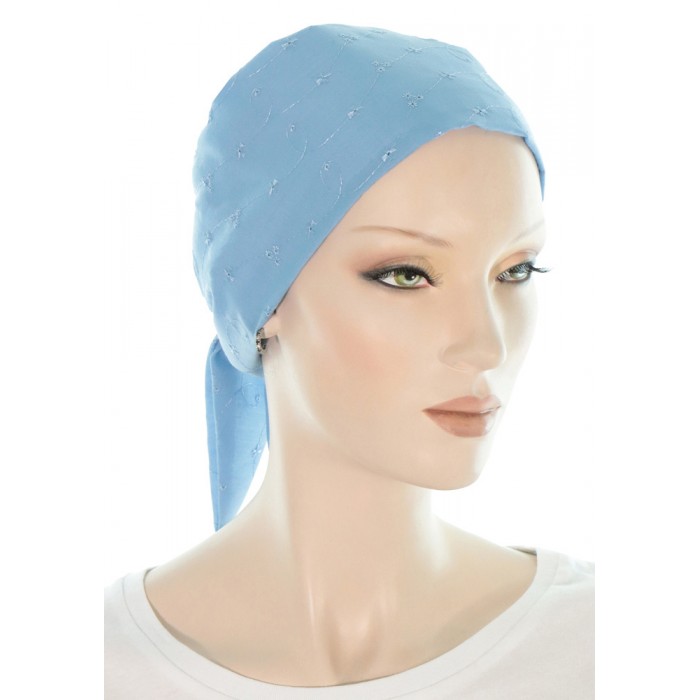 A cancer scarf is a trendy and very popular headwear among cancer patients. Typically, a chemo scarf can be pre tied or not, it is made with a soft anti slip fabric, and available in a large set of colors and styles. Some models have long tails, others have shorter ones.