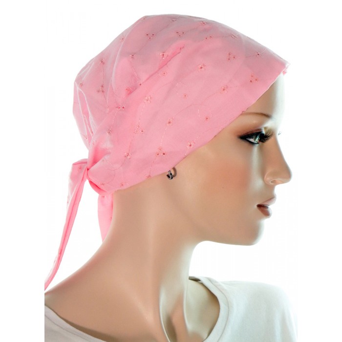 Chemo scarves are trendy and very popular headwear among cancer patients. Typically, cancer scarves can be pre tied or not, they are made with a soft anti slip fabric, and available in a large set of colors and styles. Some models have long tails, others have shorter ones.