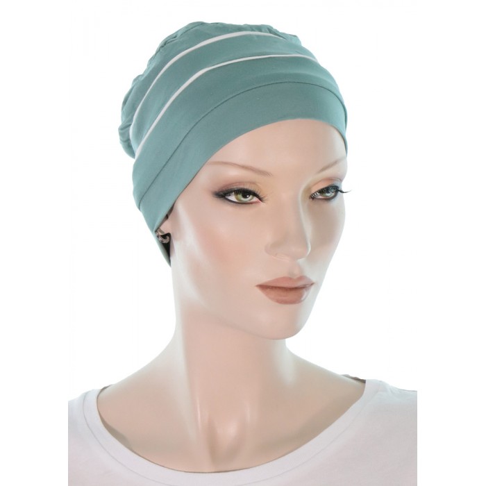 -9% Two Times Bamboo chemo cap in blue sage color for women with Cancer