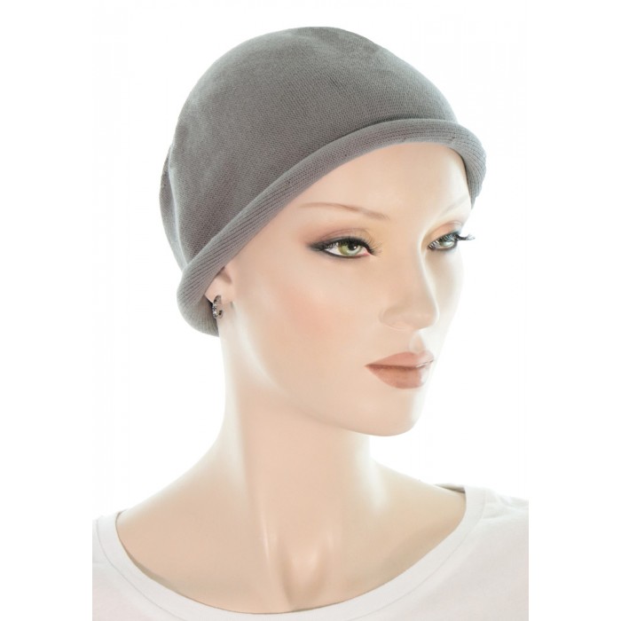 -15% Cuty knitted cotton cancer headwear in grey color for women with Cancer