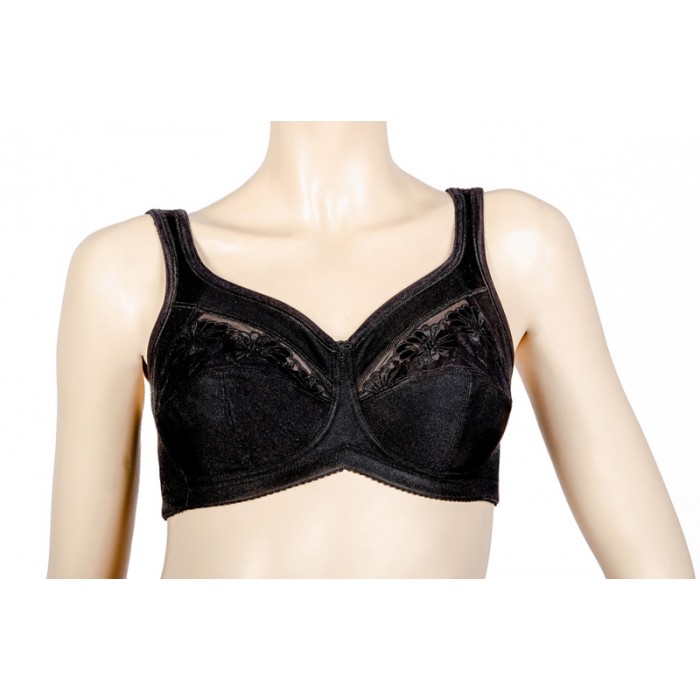 This breast cancer bra to use after Mastectomy is fashionable and soft on skin. The top of each cup is decorated with an elegant transparent embroidery. Breast prosthesis pockets are made with jersey cotton. Shoulder straps are wide and padded, and are made elastic at neck level. To provide additional comfort, the cups of this bra to wear after Mastectomy are mostly lined.