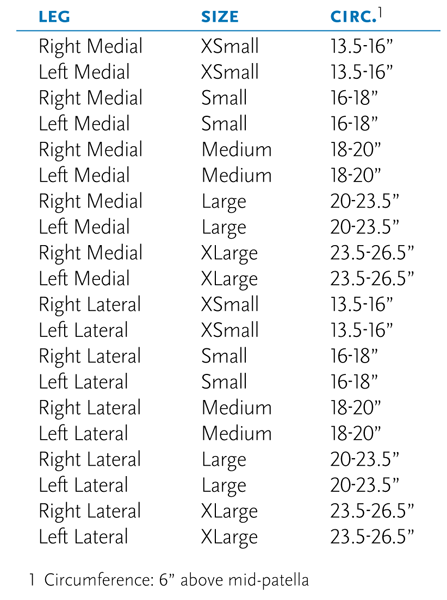 • Thigh circumferences of 13.5” (34.3cm) to 26.5” (67cm) at 6” (15cm) above mid-patella