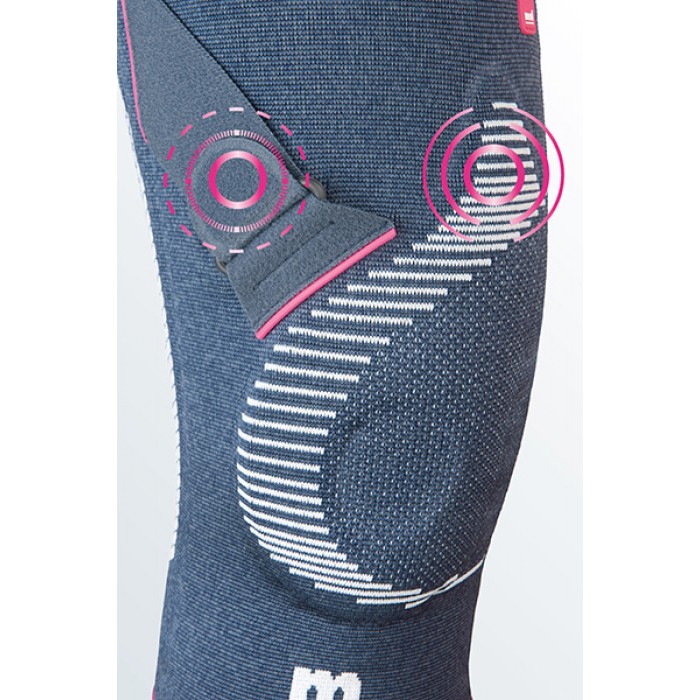 This Genumedi knee brace uses a special system which makes sure that the brace will stay in place even when skiing, even in bent position due to its textured silicone ring.