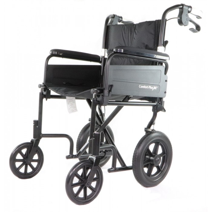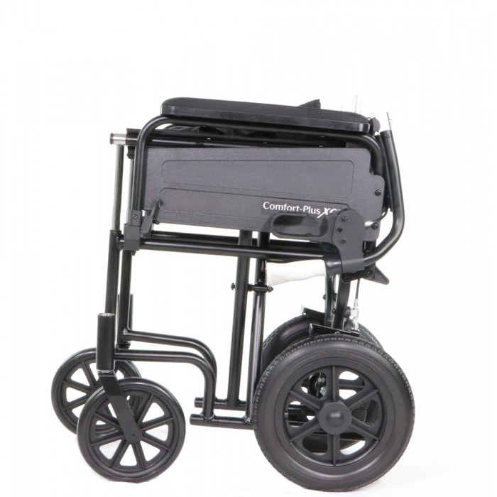 Introducing the Airgo Comfort-Plus XC lightweight transport chair with its new and larger ergonomically engineered 12 inches rear wheels, with thicker rubber tires. Improved with premium bearings, rolling and strolling are smoother and more resistant to jerks and jolts on uneven terrains. Know the difference of the Airgo Comfort-Plus XC transport wheelchair by reading the following: