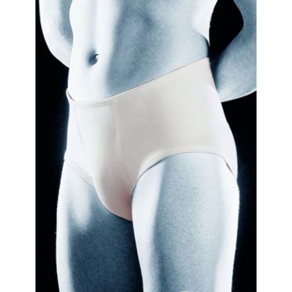 These briefs exert a compressive and support action on the abdomen to avoid that the tissues may yield and/or sag and to contain reducible inguinal hernias. In order to obtain the best functional results, a wide range of models offering a wide, comfortable and extremely flexible compression surface has been developed. Instead of pressing against the hernia, these briefs simply provide support to achieve better dynamic results: the support structures in the various models are shaped to run oblique compared to the waistband. To avoid any excessive elastic forces, the materials used are marked by a cushioned return elastic force and a self-stabilizing action thanks to an exclusive system used in making this fabric. It is made of 100% cotton to provide the utmost hygiene, freshness and comfort.