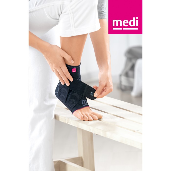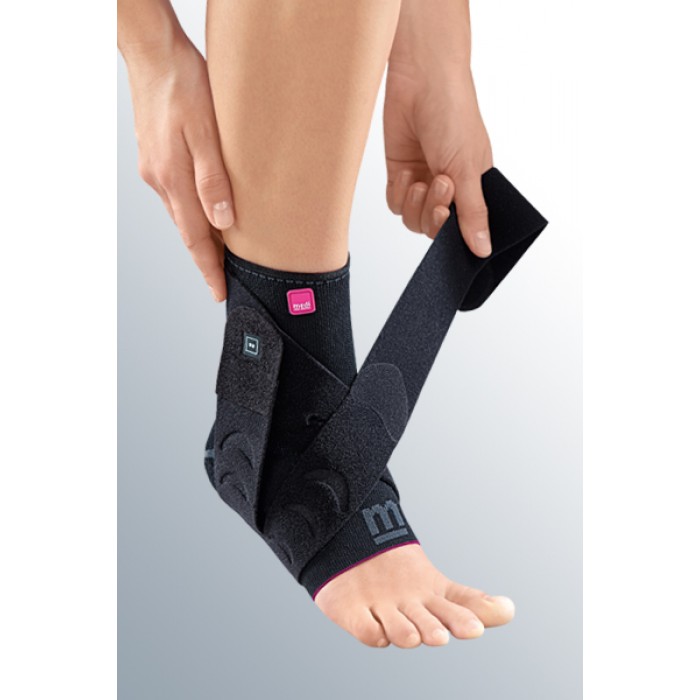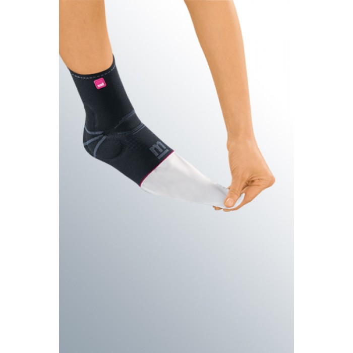 • Individually adjustable strap system with elastic and inelastic sections offers additional grip, stabilisation & protection against twisting of the ankle (supination). This brace has a massage effect through integrated silicone pads: breakdown of swelling (edema, hematoma). Proprioceptive compression provides guidance and stabilisation of the joints.