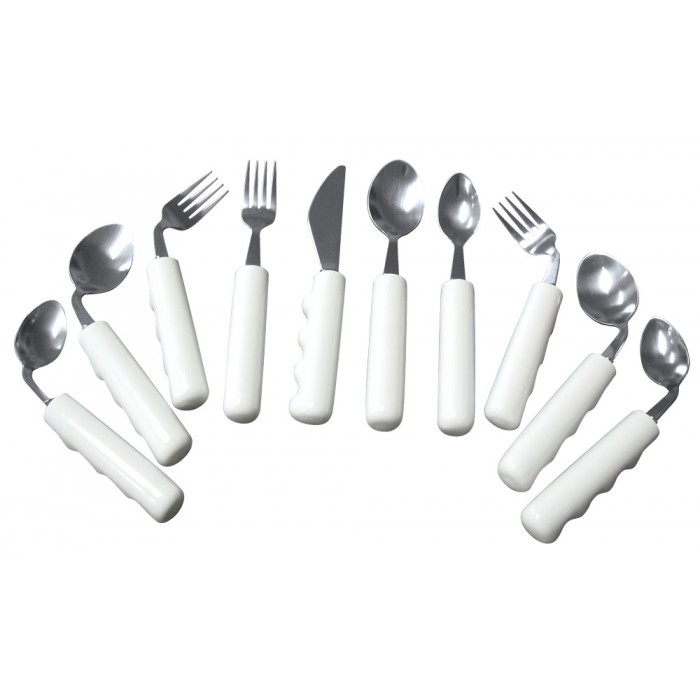 Our comfort grip weighted cutlery weighs 8oz (225 grams) which decreases hand tremors, allowing cutlery to reach the users mouth easier. An ideal solution for persons with Parkinson's or other impairments resulting in hand tremors. Latex free.