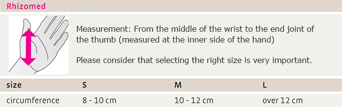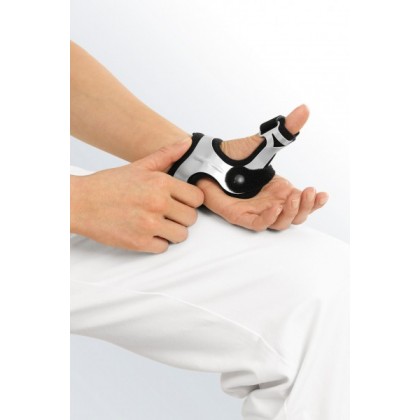 The Rhizomed is an orthosis that provides stabilisation of the thumb saddle joint and basic thumb joint. It is light, airy, easy to maintain and does not put pressure on surgical scars. The interior padding protects any risk area. The orthosis is simple to fit. The Aluminum construction allows quick and custom fit to the patient’s hand or alterations in cases of post-traumatic edema.