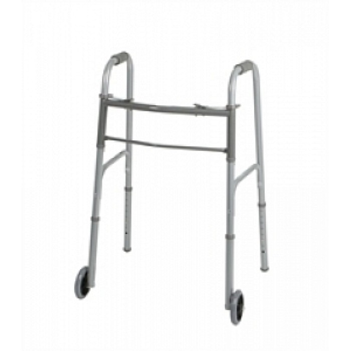 Folding Walker with Wheels 5" Two Button Adult 32.5" to 39.5"