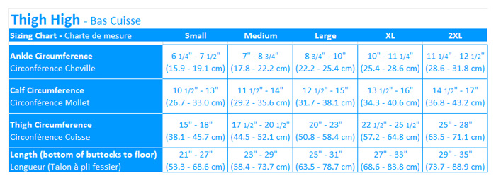 To know how to measure your 30-40 thigh high compression stockings, follow thoroughly steps in the chart below to know your exact size: