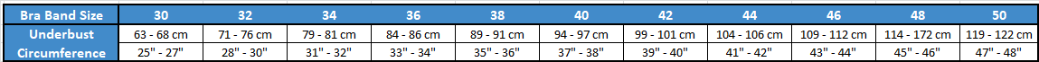 To find your compression post surgery bra size, measure the circumference under your bust and locate your size in the sizing table below: