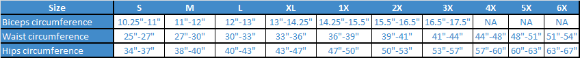 To find your post surgical arm compression garment size, use a soft measuring tape and follow the sizing chart below: