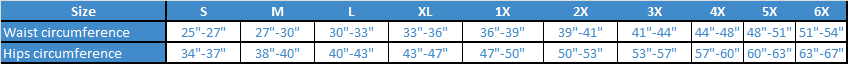 Measure your waist and hips circumference and then point your compression garment after Tummy tuck size in the table below: